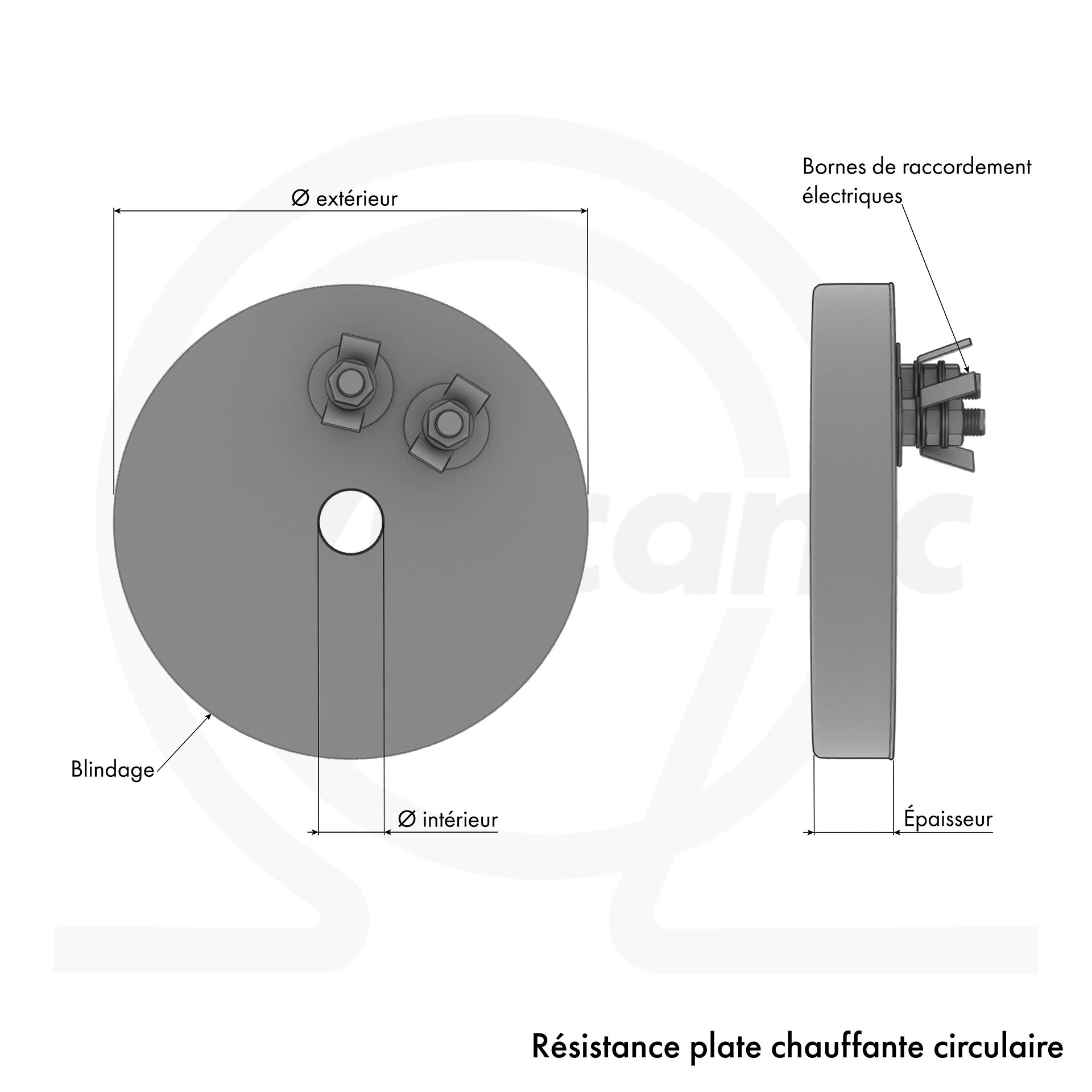 De forme rectangulaire ou ronde, les résistances peuvent être fabriquées, selon la technologie utilisée, dans des formes spécifiques. Elles peuvent intégrer des perçages pour la fixation, le passage de sondes, ou l’ajout de piquages pour tuyauterie.