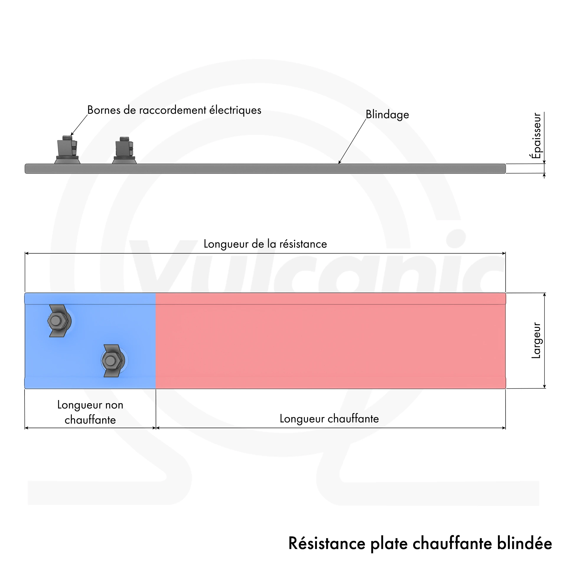 Les résistances plates chauffantes électriques sont conçues pour chauffer des surfaces métalliques planes, telles que des outillages, des tables ou plateaux chauffants, ainsi que des moules. Elles peuvent également être utilisées pour le chauffage indirect de liquides ou produits pulvérulents contenus dans des cuves, en étant fixées sous le fond ou les parois extérieures.